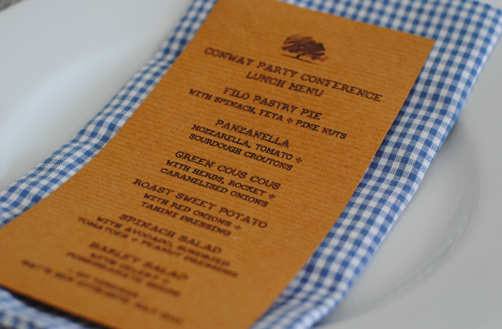 My co-planners, Laura & Tash, kindly allowed me to hijack Saturday’s lunch, which – since Nat is a keen politico – we decided would have a Conservative Party theme. Of course, this didn’t involve a pow-wow with David Cameron, more like a peppering of blue decorations (read blue & white gingham napkins sitting alongside DIY Kraft menus) & aptly named games; ‘Prime Minister’s questions’ & such like.