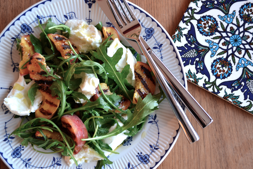 To assemble, simply rip the mozzarella into chunks & layer with the rocket & griddled peaches on some fancy schmancy plates. Finish with a drizzle of extra virgin olive oil and a sprinkling of salt & pepper.