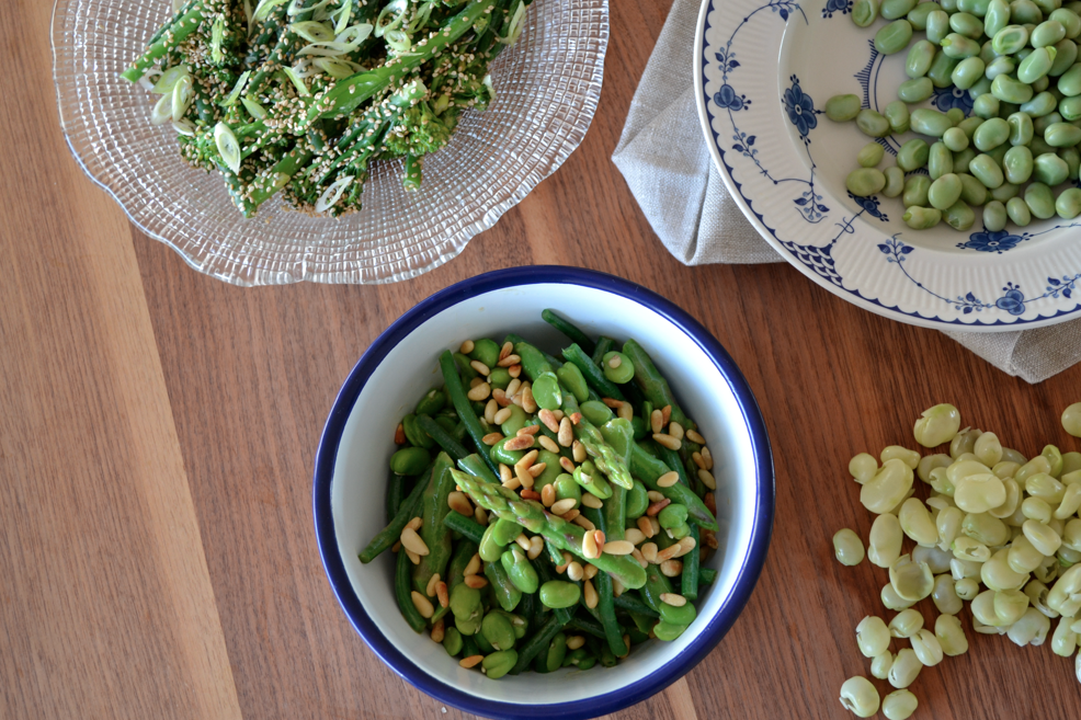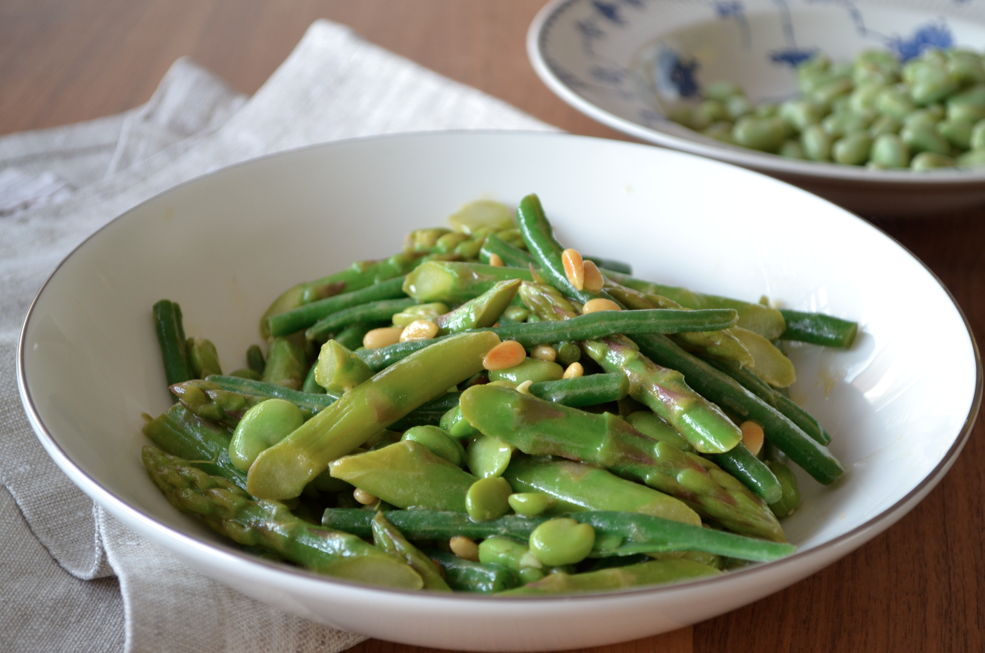 GREEN BEANS, ASPARAGUS & BROAD BEANS WITH FRENCH DRESSING //