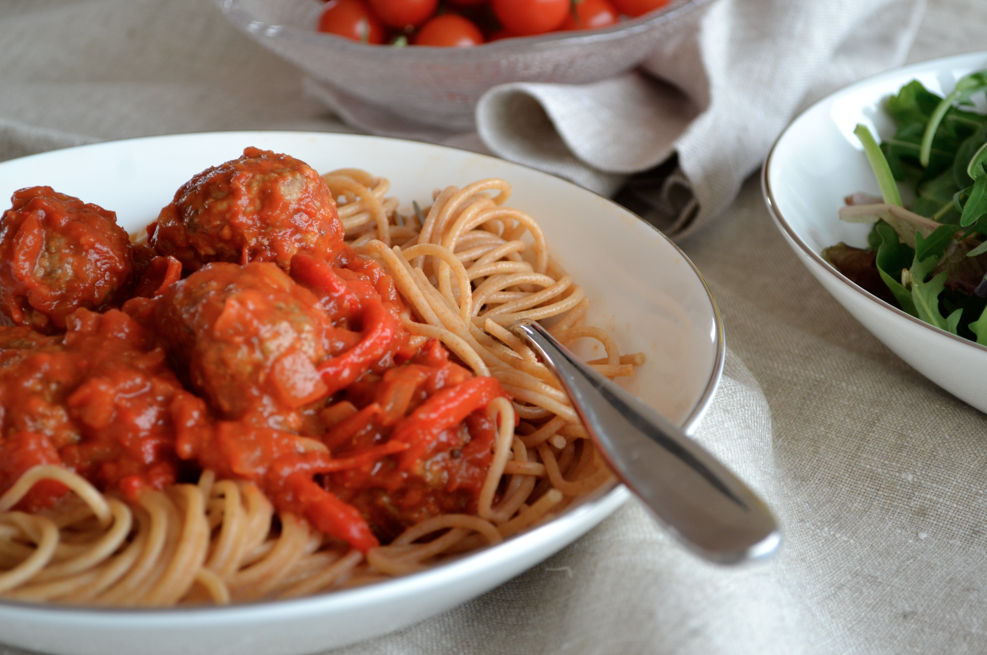 So, to redeem myself I am offering up a recipe for what I can guarantee are some really tasty meatballs bobbing away in a rich roasted pepper and tomato sauce.